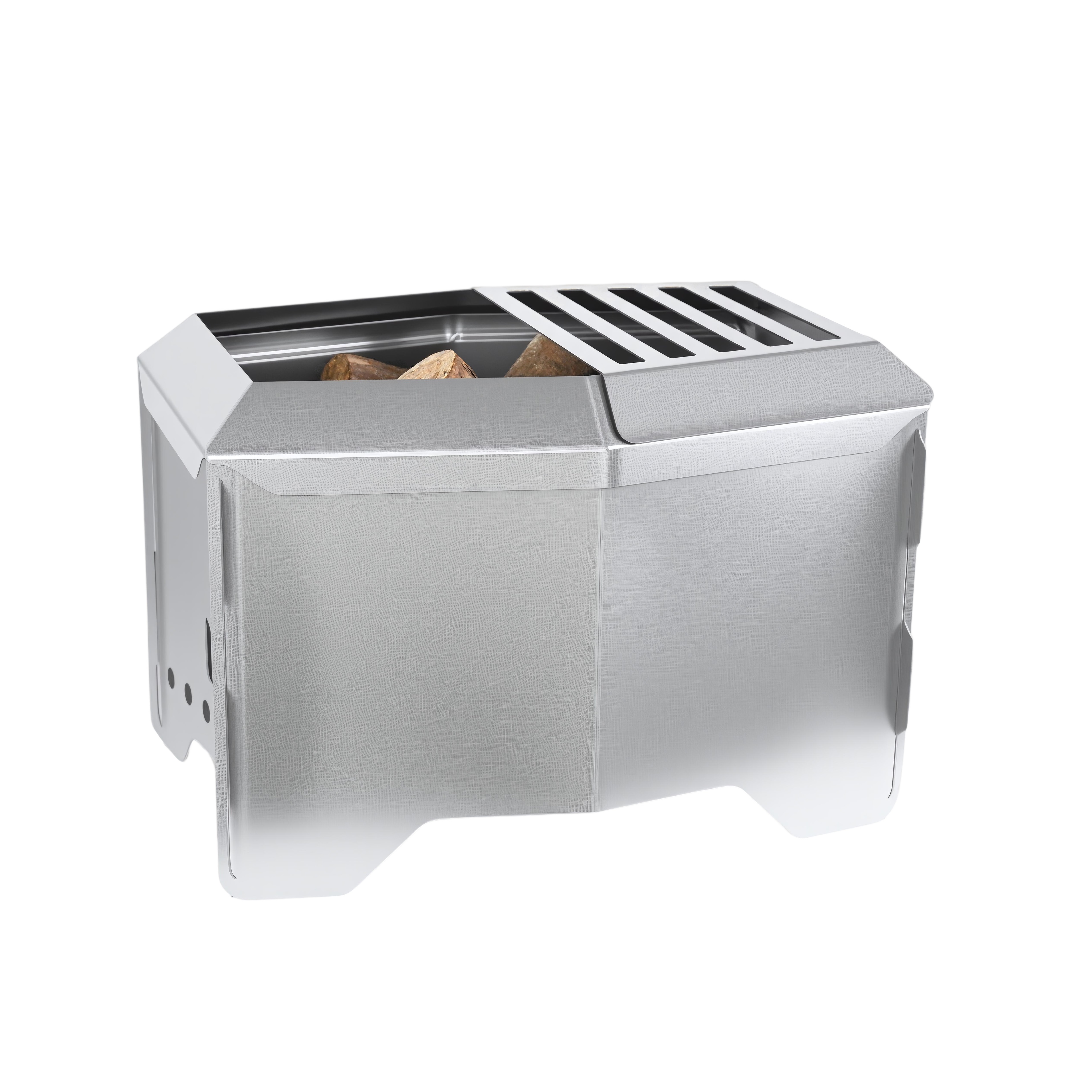 このファイヤーピットには、二重の二次燃焼構造を採用しました。従来の二次燃焼ファイヤーピットは容積が大きく構造が複雑でしたが、設計によってこれらの問題を解決しました。組み立てを簡素化し、保管スペースを削減しました。ダイヤモンド型の開口部設計により、大きな薪の投入が容易になりました。