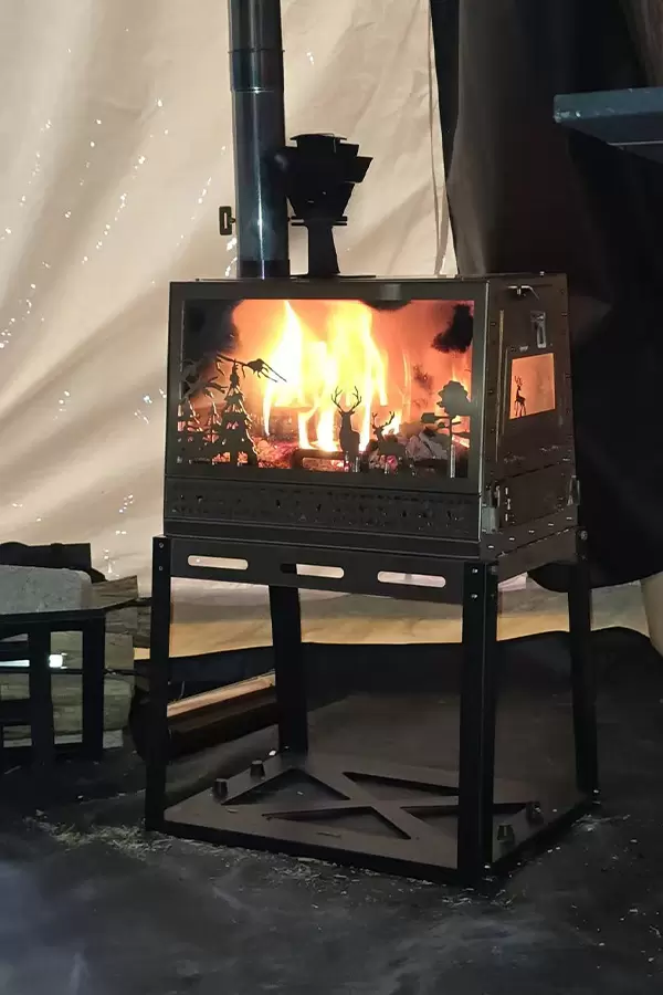 このシーンで完璧に映えるこのストーブは、エレガントな美しさを保ちながらも強力な熱出力を発揮します。レーザーカットされた野生動物のシルエットパネルが、ガラス越しに炎が揺らめく、魅惑的な森の雰囲気を醸し出します。星空の下で静かな夜を過ごす時も、友人と語り合う時も、この持ち運びやすく頑丈な薪ストーブは、確かな暖かさと雰囲気のある照明を提供してくれます。